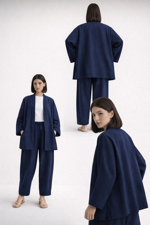 ( DARK BLUE )Lazy Luxe Robe Set Winter Season comfort blend