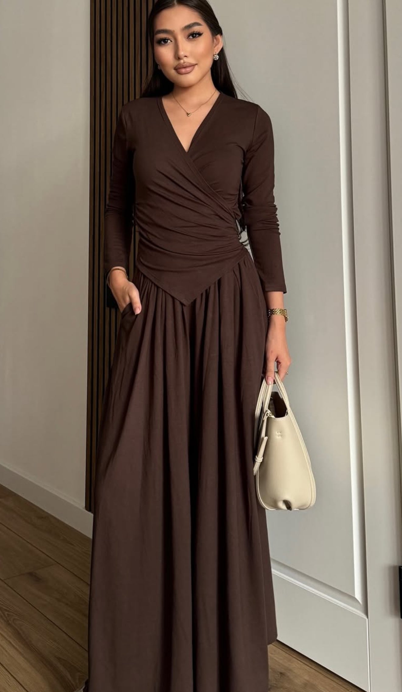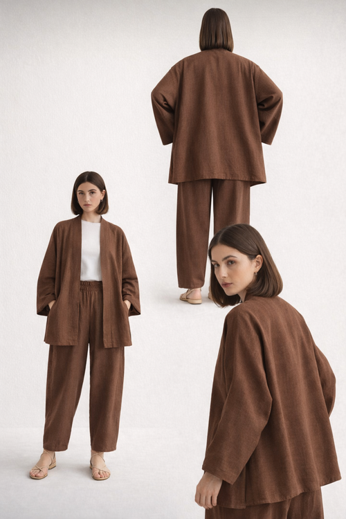 (Brown)Lazy Luxe Robe Set Winter Season comfort blend